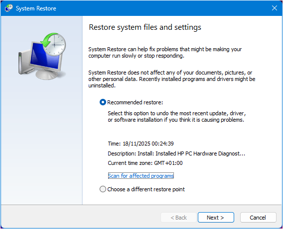 System Restore is a built-in Windows recovery tool that takes snapshots of your system files, settings, drivers and registry.